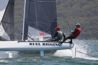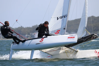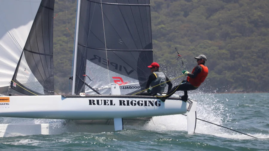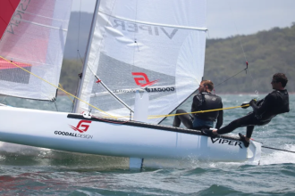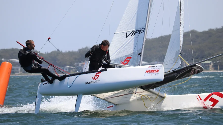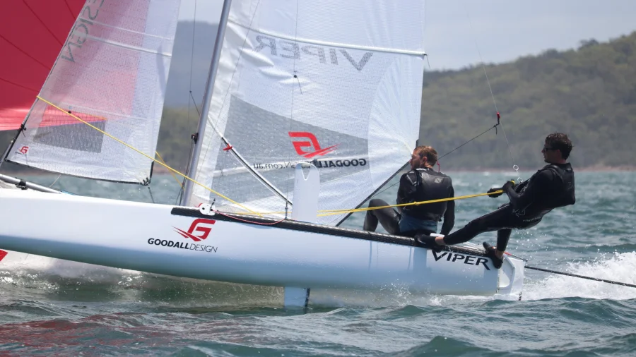 In Australia the F16 boats have made the Step to DS to match the F18, and the performance upgrade is remarkable. The VIPER is regularly beating the F18 upwind, and around the course the boats are very evenly paced. To highlight his point, 3 of the top 5 positions after 15 races were VIPERS!!!