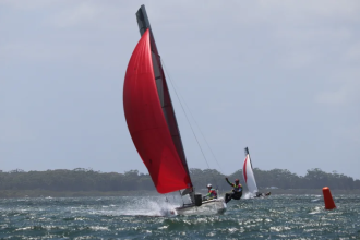 Goodall Design and the Australian F16 association have joined forces to create the Australian Formula Cup (Fcup). The concept is an absolute line honors racing series that pitches F16 and F18 against each other in a no handicap dogfight for supreme honor. All F16 and F18 on the same start, racing the same course and winner takes all.
